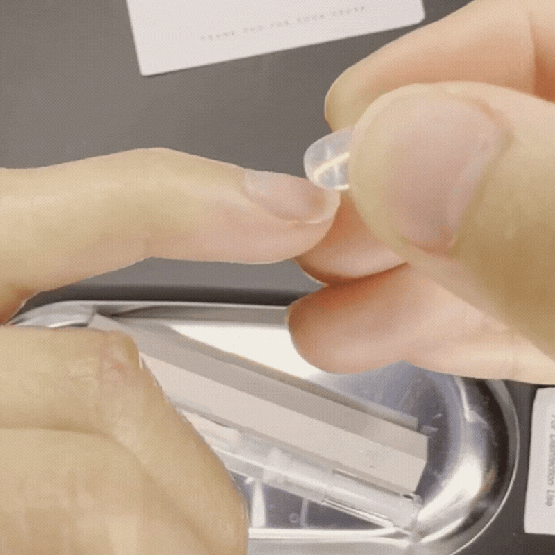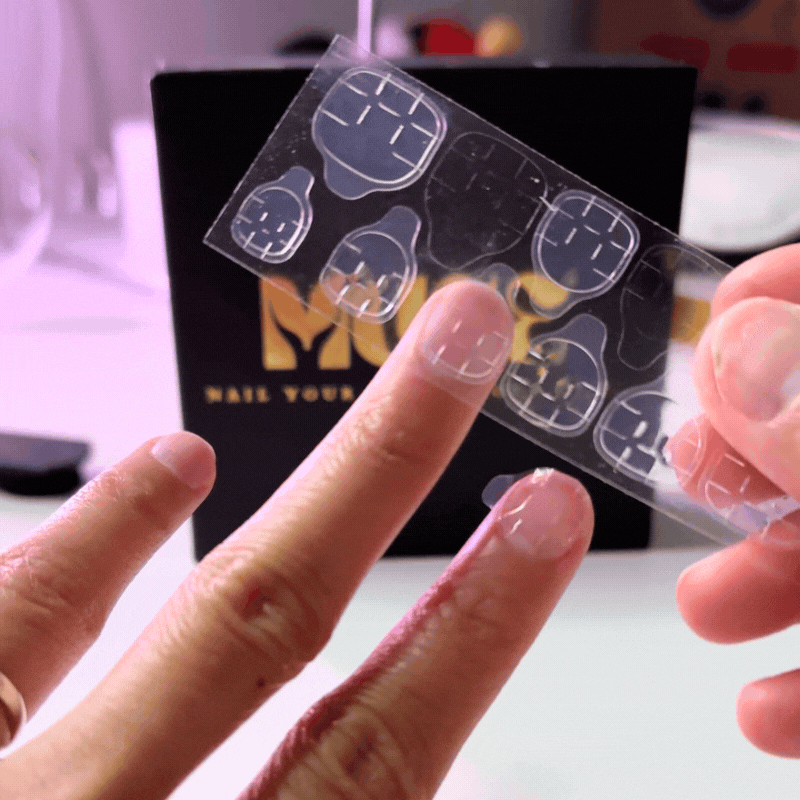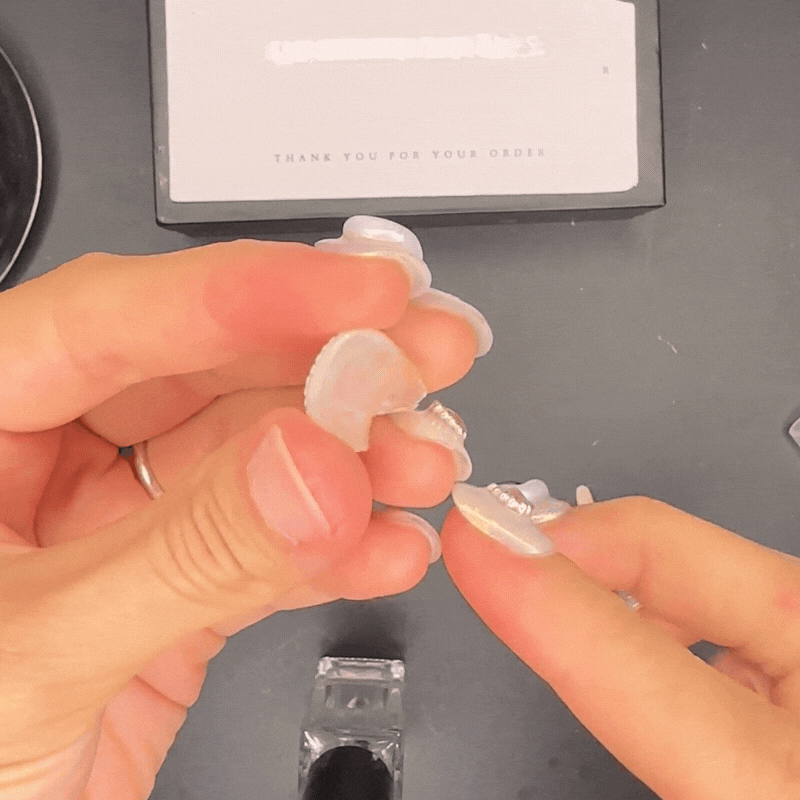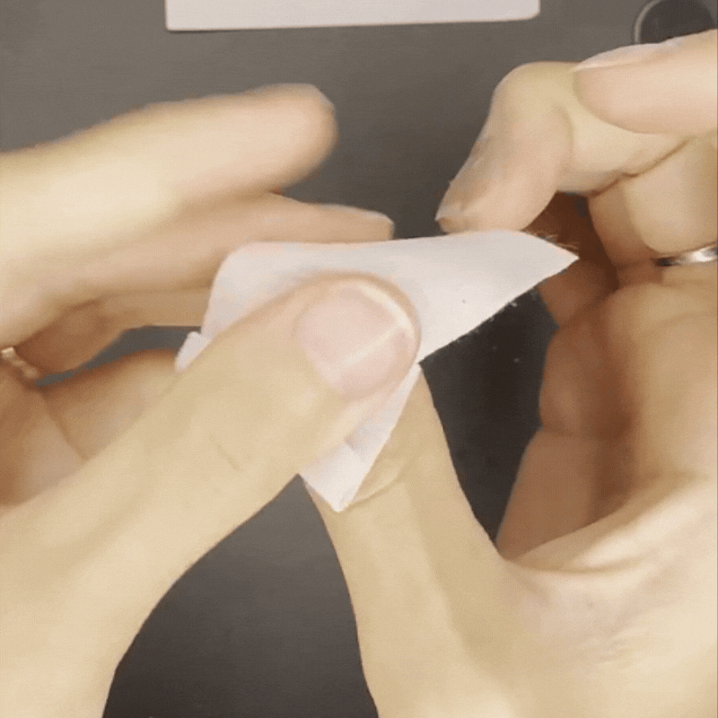 Apply tab to natural nail and press from the centre to the edges to remove any air bubble.