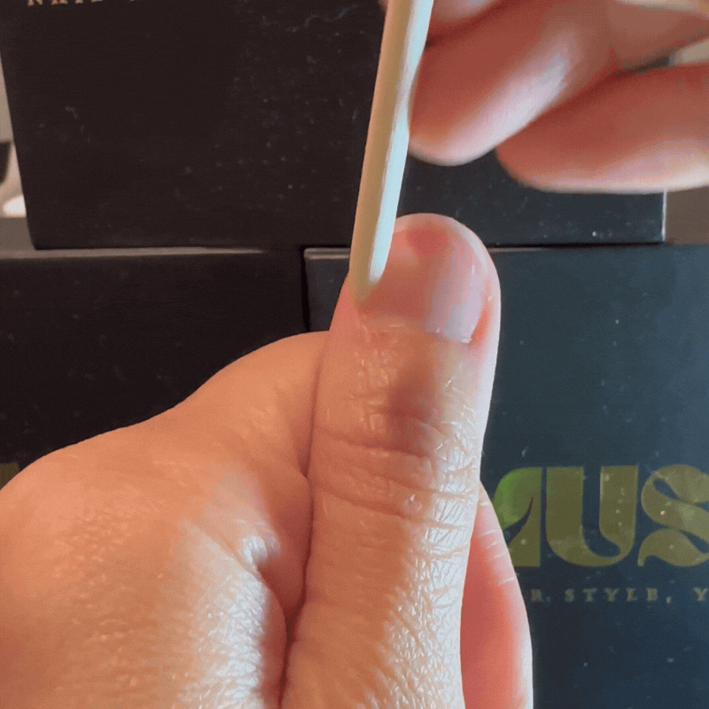 Use the pointy side of cuticle pusher to clean up any excess gel.