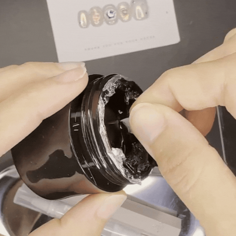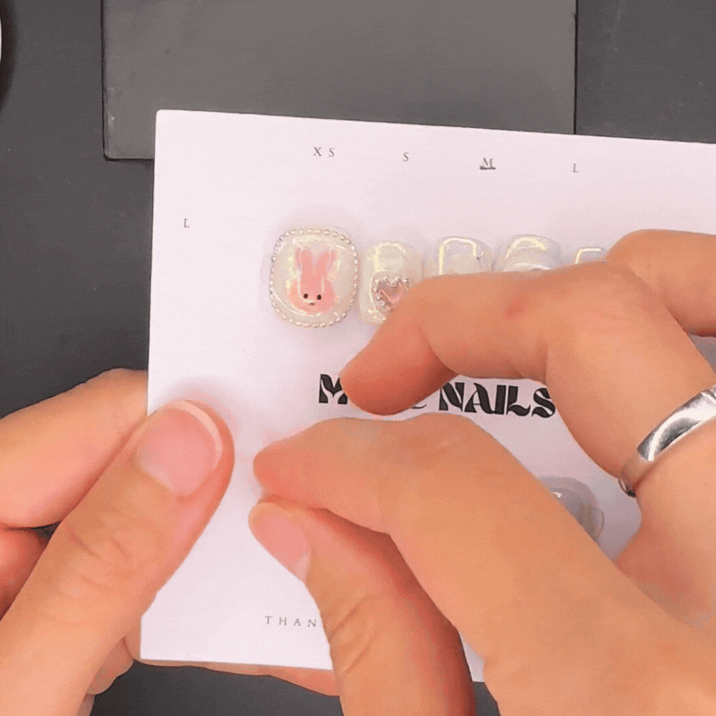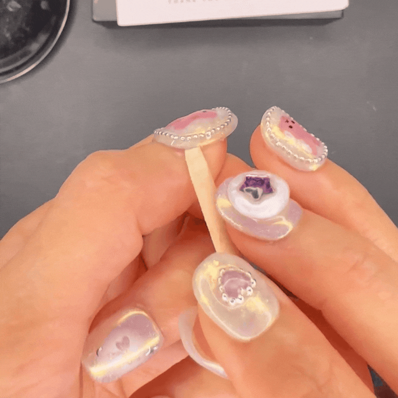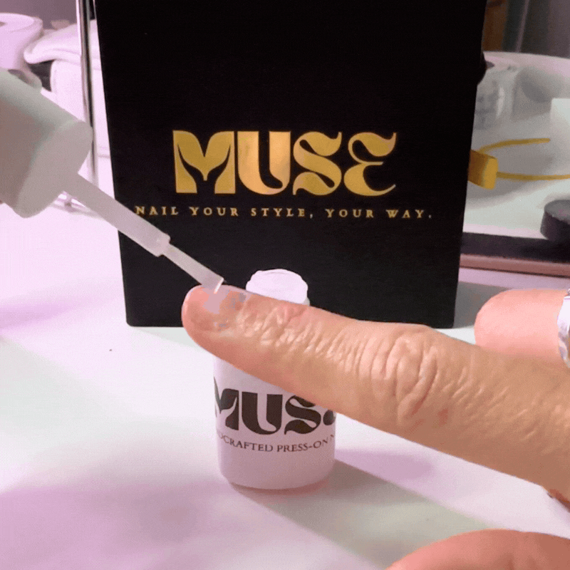Take a pea-sized amount of the solid nail glue gel with press-on nail.