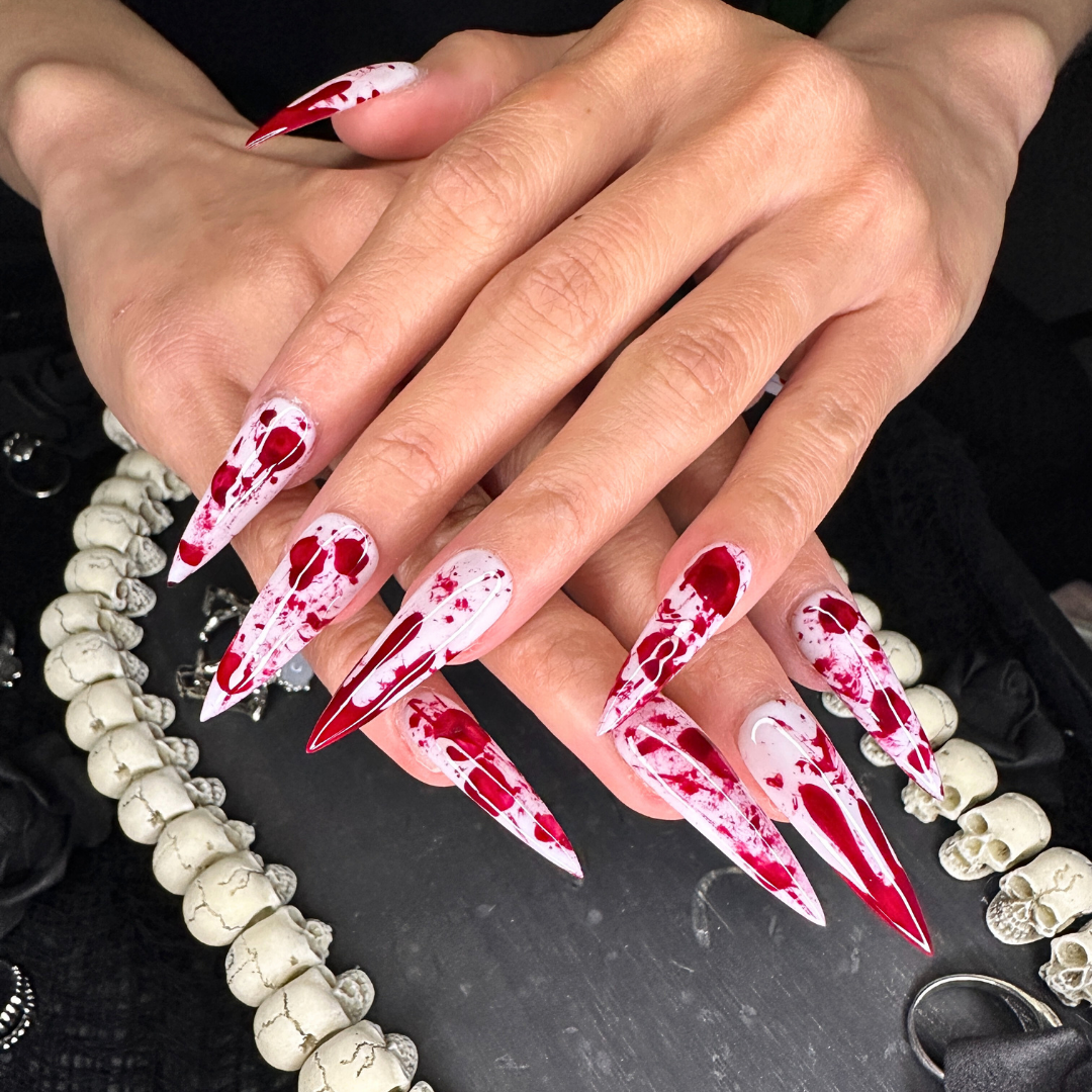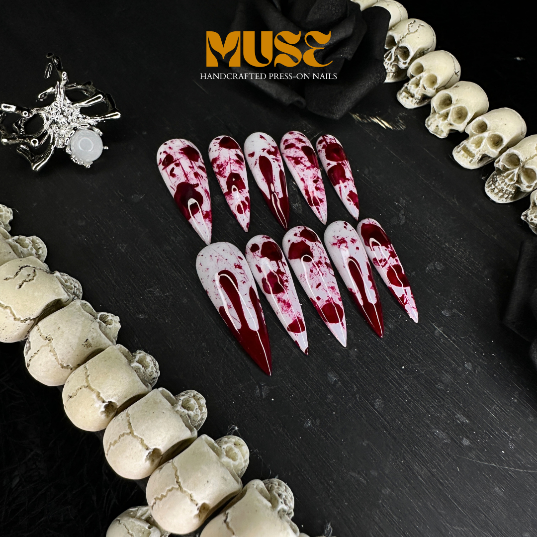 Splashes of blood scattered everywhere to unleash a spine-chilling Halloween scare.