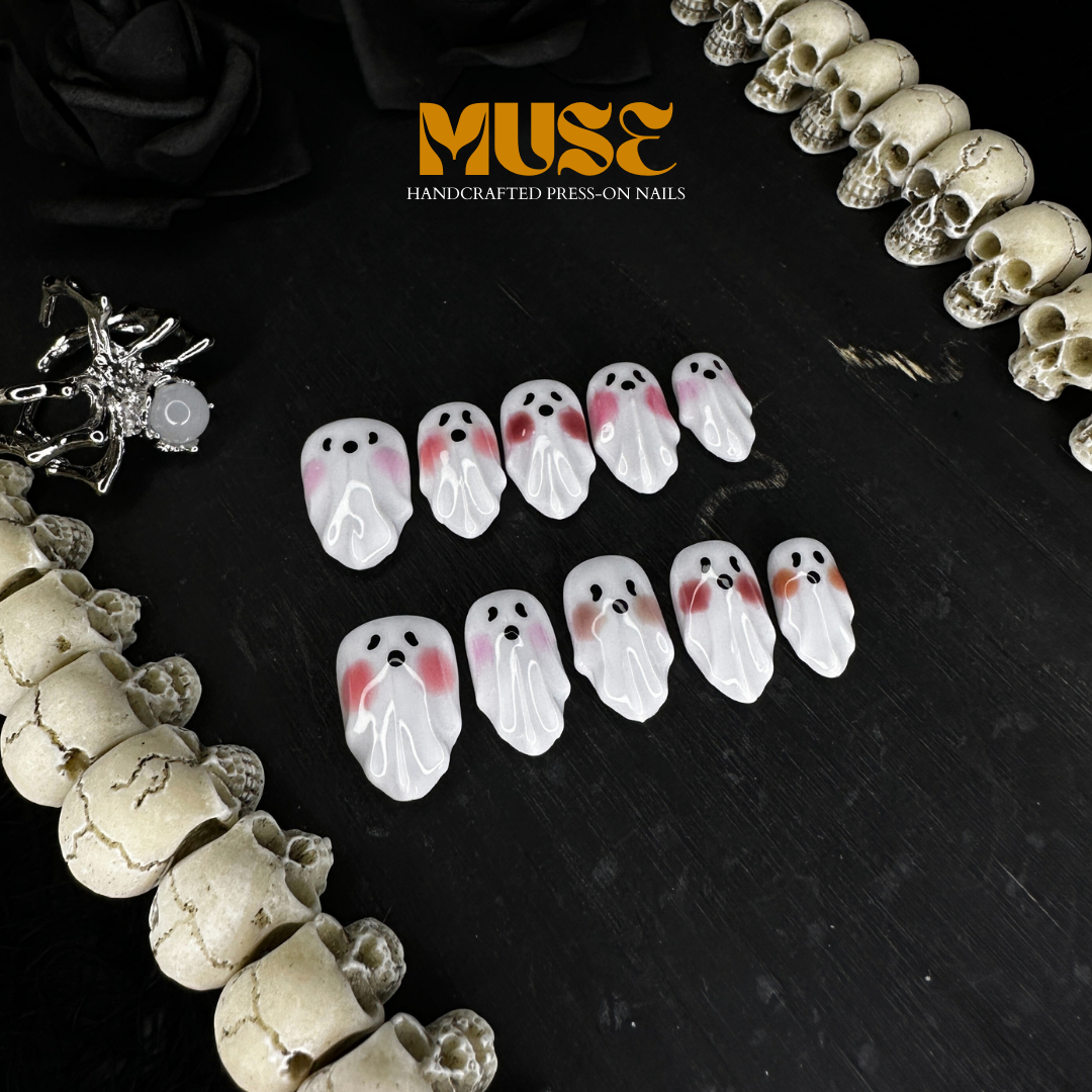 Charming little ghosts sporting various shades of pink blush, playfully expressing their love to human.