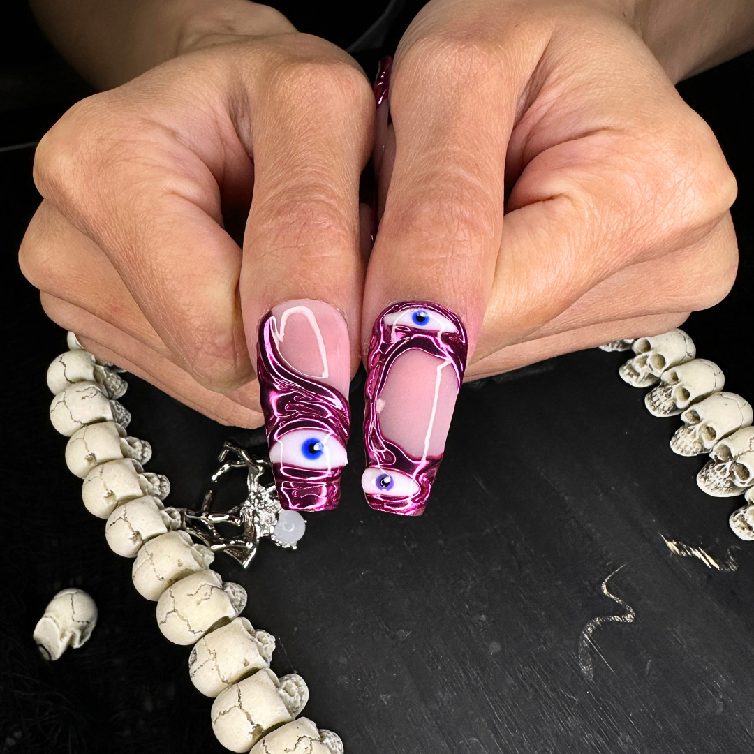 The Watcher features seductive pink chrome accented with 3D eyeballs that follow your every move.