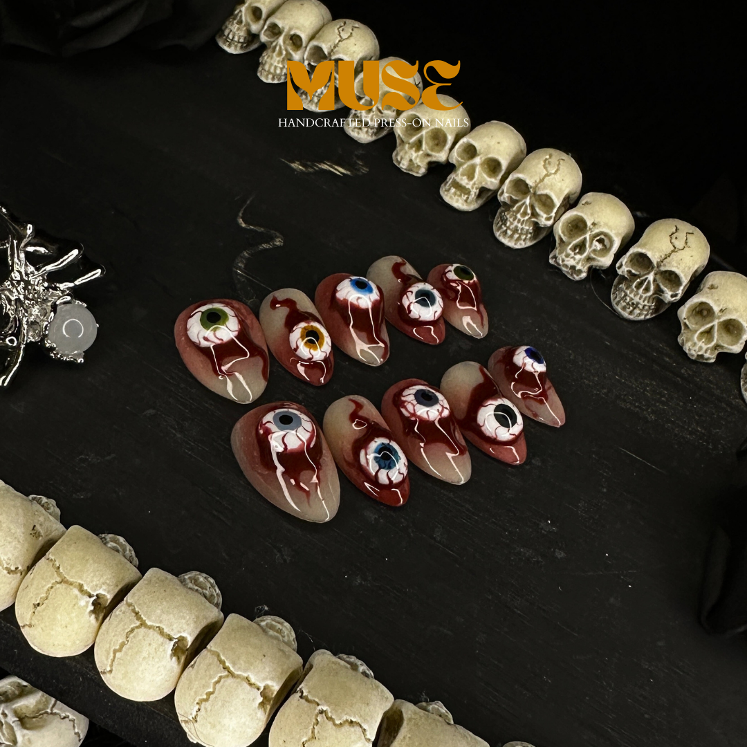 Intense 3D eyeballs evoke the dark thrill of a ruthless killer leaving a trail of carnage, gathering stolen eyes as twisted keepsakes, so you must watch out!